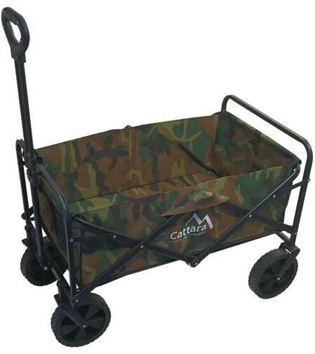 Kempingezni vagy sátor alá menni a természetbe. Többé nem kell a dolgait a kezedben vagy hátizsákban a hátadon cipelned. Helyezze őket a praktikus Cattara TROGIR ARMY összecsukható kocsiba. Rengeteg tárgy, alapanyag és poggyász elfér benne, és akár 50 kg-ot is elbír.