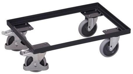 Acél kocsi rakodófelület nélkül 600 x 400 mm méretű műanyag ládákhoz. Négy forgókerék, melyek közül kettő fékkel van felszerelve. Szürke, nyommentes, termoplasztikus gumi kerekek műanyag felnin, precíziós golyóscsapágyakkal, lábvédelemmel.