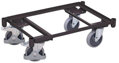 Acél szállítókocsi rakodófelület nélkül, 600 x 400 mm méretű műanyag ládákhoz alkalmas. Négy forgókerék, melyek közül kettő fékkel van felszerelve. Szürke, nyommentes, termoplasztikus gumi kerekek műanyag felnin, precíziós golyóscsapágyakkal, lábvédelemmel.
