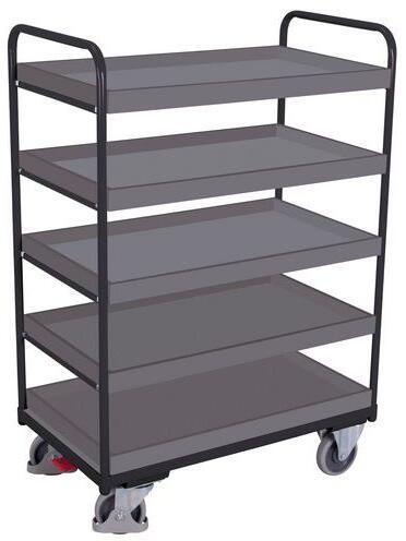 Magas polcos kocsi öt polccal, anyagok és áruk szállítására. A 4,5 cm-es megemelt élekkel ellátott MDF polcok megakadályozzák a tárgyak kiesését a kocsiból. A mozgást négy gördülő golyóscsapágyas kerék biztosítja, amelyek közül kettő fix, kettő forgatható Easy Stop fékekkel és védőburkolatokkal. A teherautó TUV tanúsítvánnyal rendelkezik.