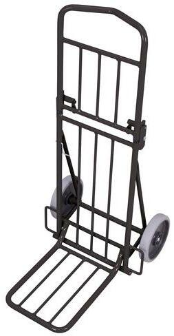 Összecsukható acéldoboz csomagok szállításához. Lapát méretei 295 x 390 mm. Gumiabroncsok acél keréktárcsán vagy szürke, nyomokat nem hagyó hőre lágyuló gumi kerekek műanyag felniken, precíziós mélyhornyú golyóscsapágyakkal.