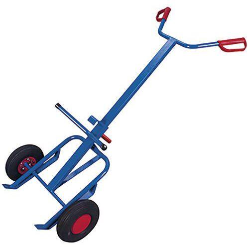 Hegesztett acél szerkezetű kocsi 200l-es hordók szállításához. 2 műanyag fogantyú védelemmel. Központi hordótámasz a nagyobb stabilitás érdekében. Gumiabroncsok acélfelnire vagy tömörgumi kerekek speciális műanyag felnire, precíziós golyóscsapágyakkal és műanyag kerékburkolattal.