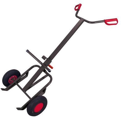 Hegesztett acél szerkezetű kocsi 200l-es hordók szállításához. 2 műanyag fogantyú védelemmel. Központi hordótámasz a nagyobb stabilitás érdekében. Gumiabroncsok acélfelnire vagy tömörgumi kerekek speciális műanyag felnire, precíziós golyóscsapágyakkal és műanyag kerékburkolattal.