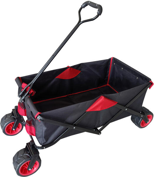 Fém kézikocsi, összecsukható kerti kocsi ponyvával, fekete-piros (HT8103)