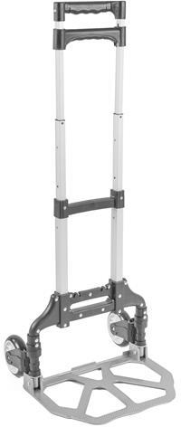 A G21 teleszkópos összecsukható molnárkocsi praktikus felszerelésként szolgál otthonra, műhelybe vagy raktárba. Megkönnyíti a nehéz csomagok, nagybevásárlás, küldemények vagy poggyász szállítását. Könnyű alumínium konstrukciójának, teleszkópos fogantyújának és lehajtható rakodófelületének köszönhetően egyszerűen kezelhető. Kompakt méreteinek köszönhetően autó csomagtartójába is elfér.