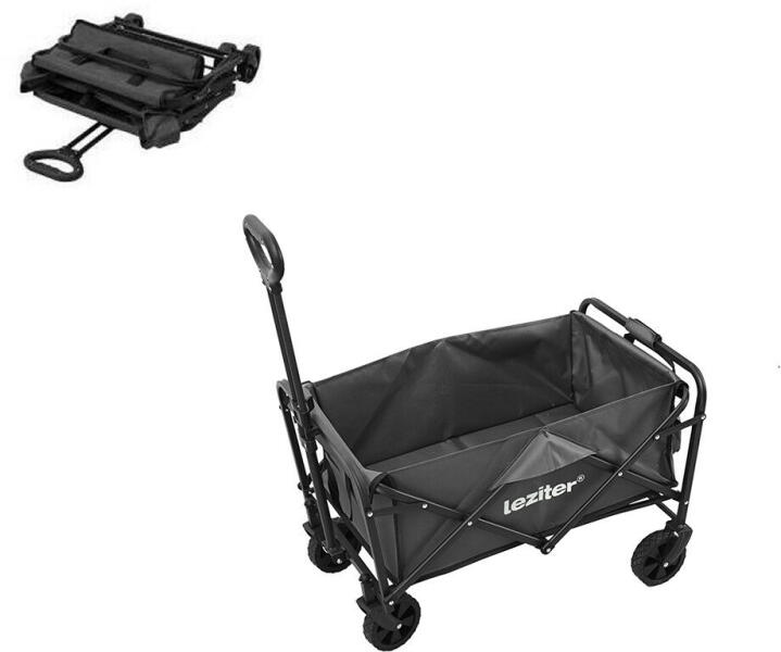 Összecsukható kerti kocsi / strandkocsi - Könnyű szállítás bárhol! ?️ Ez az összecsukható kerti kocsi ideális választás strandoláshoz, kempingezéshez, bevásárláshoz vagy kerti munkákhoz. A masszív kialakítás és a 80 kg-os teherbírás garantálja, hogy könnyedén szállíthasd a szükséges felszereléseket. Főbb előnyök: ? Nagy teherbírás: Akár 80 kg-ig terhelhető. ? Könnyű manőverezés: Könnyen húzható bármilyen terepen. ? Kompakt tárolás: Összecsukható, így kis helyen is elfér. ?️ Időjárásálló anyag: Vízlepergető és könnyen tisztítható. Tulajdonságok:Váz anyaga: Fekete festett vas a stabilitásért. Szövet anyaga: 600D Oxford szövet a tartósságért. Kerekek: 13 x 3 cm-es kerekek a könnyű gördülésért. Méretek: 75 × 50 + 67-91 cm Szín: Szürke Használati javaslatok:Strandolás: Tökéletes strandfelszerelések, törölközők, játékok szállítására. Kempingezés: Ideális kempingfelszerelések, élelmiszerek szállítására. Bevásárlás: Segítség a nehéz bevásárlószatyrok cipelésében. Kerti munka: Hasznos kerti szerszámok, növények szállítására. Ne bajlódj többé a nehéz csomagokkal! Ezzel a praktikus és erős kocsival könnyebbé teheted a szállítást bárhol is vagy. ✨